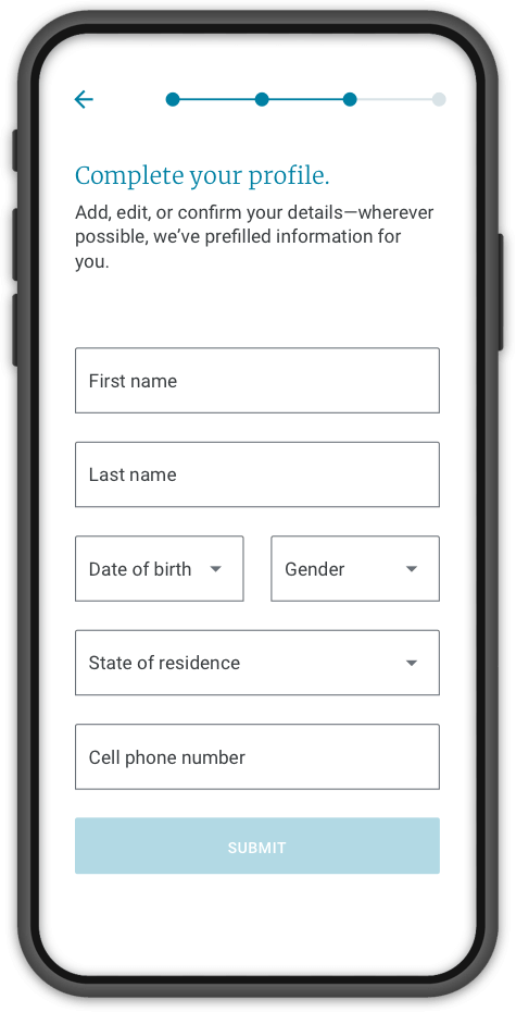 After you submit your access code, you’ll need to provide a few quick details to ensure your privacy.