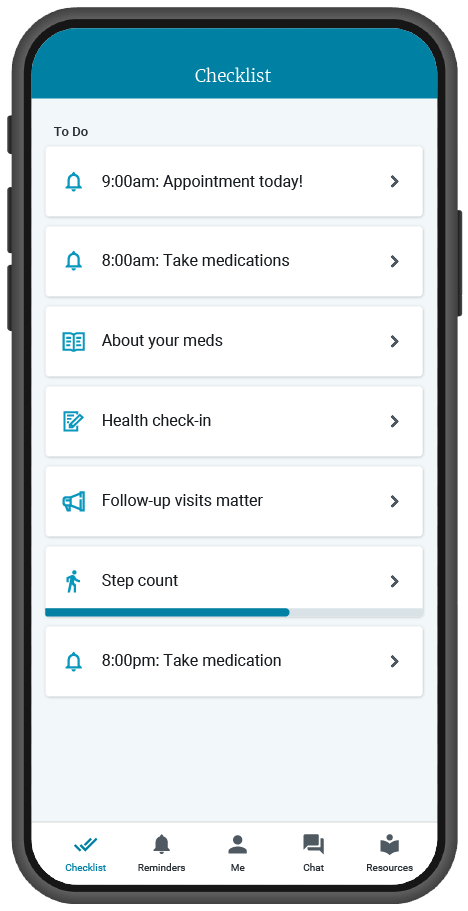 Click on “Checklist” to see your daily checklist. This will tell you what you need to do each day to manage your health.